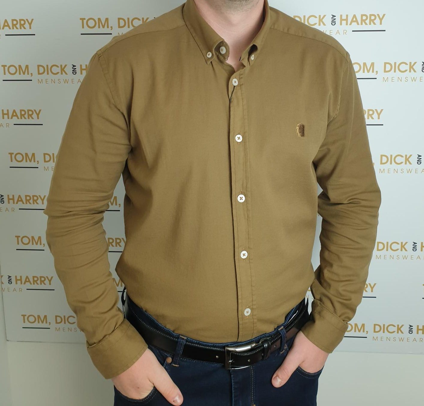 Dark Blue / Tan Ashton slim fit cotton stretch long-sleeved shirt with embroidered brand mark, front placket and button-down collar.